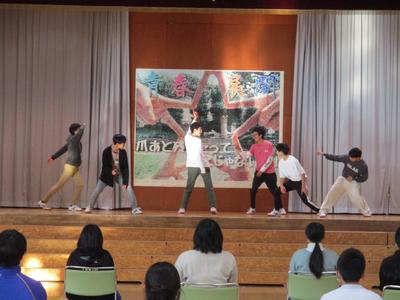 本日は中学校一日入学の小学6年生もお客様に、にぎやかにダンス発表会がおこなわれました。体育の授業で練習を重ねてきたダンス。1年生から3年生までそれぞれのグループの個性が輝いていました。ある程度踊れるようになるまでは、苦手意識があったり、恥ずかしかったりするダンスですが、今日はステージできらきら楽しそうに踊る姿がとてもかっこいい生徒たちでした。友達のグループのダンスも覚えて、体育館に広がって一緒に踊る生徒もたくさんいて微笑ましかったです。