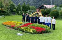 FBC(フラワーブラボーコンクール)の中央審査で、昨年に引き続き、本校の花壇が優秀賞を受賞しました。併せて、長野県教育委員会賞をいただきました。小中学生が一緒に仮植作業などを行い、中学の造園委員会中心に手入れをしてきれいな花々を咲かせました。今年の笹りんどう祭テーマ「彩虹(さいこう)~繋がる私たちの想い~」から虹をイメージした花壇は、審査員の方から多くのお褒めの言葉をいただきました。
