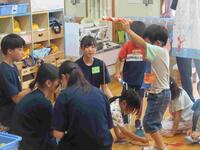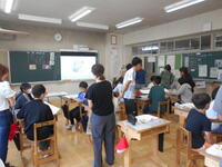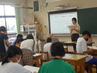 7月2日(水)、3日(木)に新居町へ行ってきました。トヨタ産業技術記念館では、自動車の歴史やトヨタの技術について見学しました。名古屋港水族館では、木曽町の友だちと館内を見学しました。イルカショーでは、イルカのジャンプに釘付けになりました。夜は、遠州新居手筒花火の鑑賞会と体験がありました。地元の保存会の方から見せていただいた花火はとても大きく、火花が噴水のように噴き出して大迫力でした。翌日の新居小学校との交流では、釜揚げしらす体験、交流ゲームなど、新居小学校と新居町の皆様が大歓迎してくださいました。友だちも増え、笑い声がたくさん聞こえました。冬には、私たちが新居町のみなさんを木曽町にお迎えします。再会できることが楽しみです。