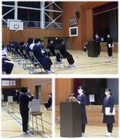 次の生徒会長を選出するための立会演説会と選挙が行われました。これまでの教室訪問や選挙公報、そして今回の立会演説会を踏まえて候補者の考えを確認し、自分の意思で投票することができた選挙となりました。12月末には、3年生から2年生へ生徒会が引き継がれ、年明けからは新生徒会となります。生徒会は生徒会長だけがつくっていくものではありません。投票により決まった生徒会長の目指す学校をともにつくっていくことができるよう、それぞれの立場から積極的に活動に関わっていくことができるとよう、みなさんの姿に期待しています。