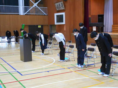 12月の終わりに、生徒総会と生徒会引き継ぎ会が行われました。生徒総会では、中3の生徒たちが全校の前で堂々と発表したり、受け応えしたりして立派に役を務めていました。引き継ぎ会では、新役員紹介がありました。日義中生徒会の伝統を引き継ぎながら、来年度はどんな生徒会になるか楽しみですね。