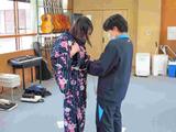 中1:日本の伝統を着る 投稿: 義仲 (02/20) カテゴリー: 中学校 2月20日(金)中学2年生が家庭科の授業で「着物の着付け体験」を行いました。今回は和服の構造や歴史について学習を深めたあと、実際に着付けに挑戦しました。 生徒の多くが「人生で初めて着物を着る」という経験でした。普段、着慣れた洋服とは全く違う帯の締め方や布の重なりに、「思ったより手順が多くて難しい!」「帯を結ぶのが大変」と苦戦する場面もありましたが、お互いに教え合いながら一生懸命取り組んでいました。 Tweet -