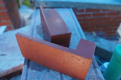 屋根部分に使われるレンガは、強度がより強く、水が浸み込みにくい「焼き過ぎレンガ」を特別に使用するそうです。この写真の左側のレンガが「焼き過ぎレンガ」です。色合いも少し違いますね。